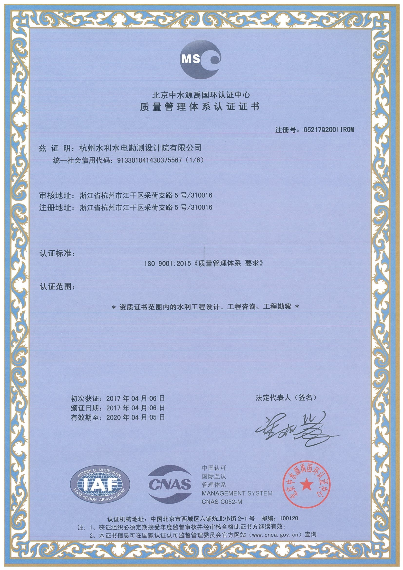 質量管理體系認證證書